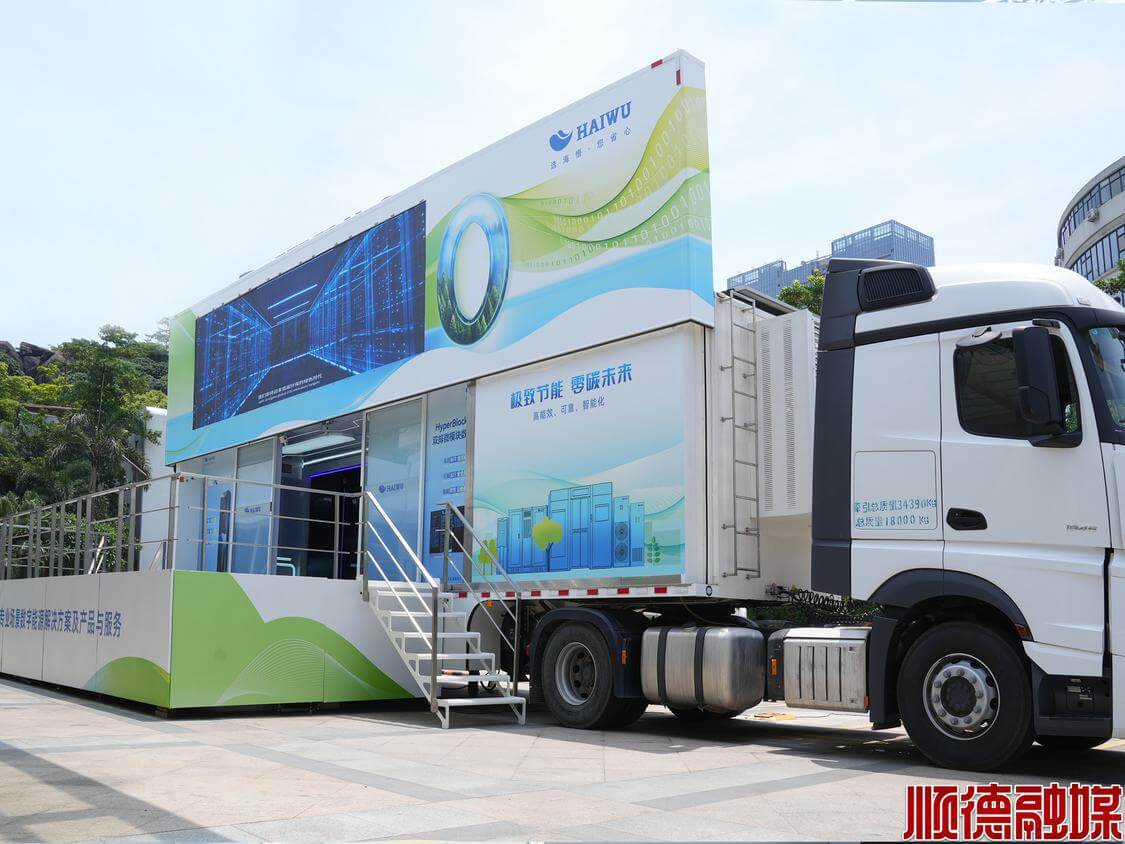 煥新升級的“海悟中國行”展車融合智算時代數字化轉型的全新理念,圍繞“雙碳”背景下海悟在數字能源領域的實踐,以沙盤、模型等多重交互體驗,生動展示了海悟數據中心全場景解決方案、HyperBlock系列微模塊數據中心、邊緣數據中心解決方案、數據中心液冷解決方案、云邊端通信基站解決方案、智能電氣解決方案等多場景解決方案及產品與服務,帶來一場技術與產品的創新盛宴。