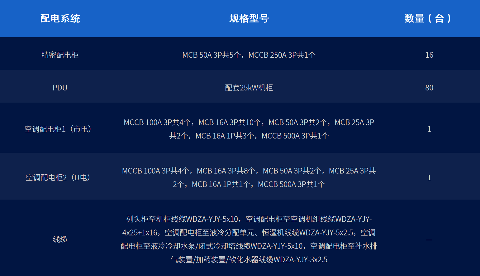 冷板式液冷空調方案具體新增配電設備明細如下: