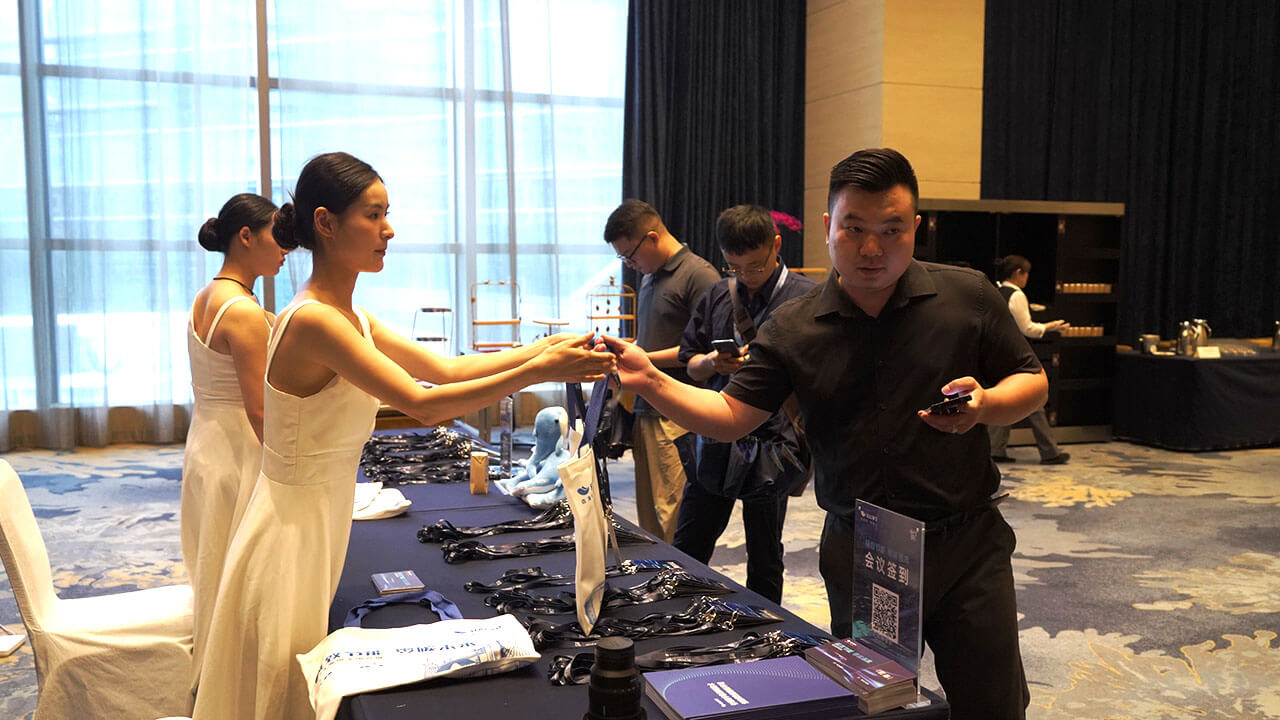 活動還未正式開始,現場已是一片熱鬧非凡。嘉賓們手持特制的簽到卡,領取了海悟集團的精心準備——公司介紹折頁、精美小禮品,以及詳盡的數據中心解決方案畫冊。每一份資料都承載著海悟對綠色節能技術的執著追求與不懈創新。背景簽名墻前,嘉賓們紛紛留影,記錄下這一激動人心的時刻。