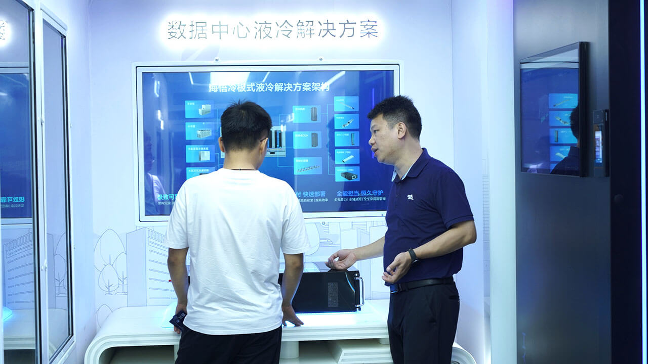 最令人期待的莫過于展車參觀環節。海悟集團精心打造的“極致節能零碳未來”展車,仿佛一個微縮的綠色數據中心世界。在這里,嘉賓們可以近距離接觸HyperBlock系列微模塊數據中心、邊緣數據中心解決方案、數據中心液冷解決方案等前沿科技產品,親身體驗綠色科技的魅力。