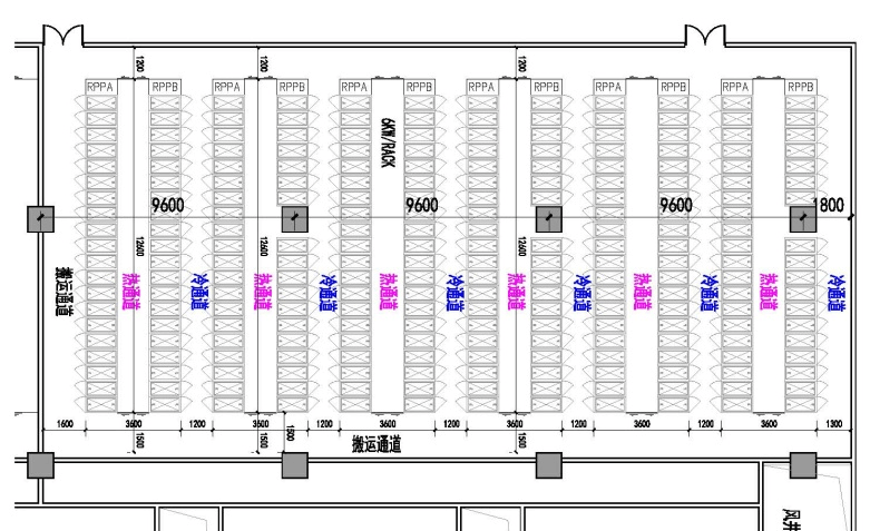 例如4.4kW-6kW/架機房柱網多選擇9.6米柱距,具體詳見下圖