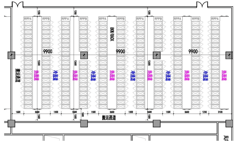 8kW/架機房根據冷通道最小寬度1.5米,柱網可為9.9米