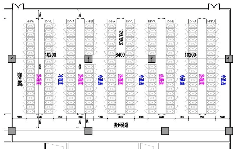 12kW/架機房根據冷通道寬度1.8米,柱網可為10.2米及8.4米相結合