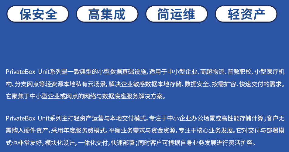 海悟云“云邊驛站”園區(qū)本地化私有數(shù)據(jù)機(jī)房托管服務(wù)方案,專為企業(yè)園區(qū)、寫字樓等場景設(shè)計(jì),旨在滿足中小型企業(yè)、商超物流、小型醫(yī)療機(jī)構(gòu)、分支網(wǎng)點(diǎn)、MES制造等輕資源需求場景。該方案聚焦于中小型企業(yè)的私有云數(shù)據(jù)底座,提供包括機(jī)柜、UPS配電和服務(wù)器等在內(nèi)的完整服務(wù)解決方案,確保數(shù)據(jù)敏感性、系統(tǒng)穩(wěn)定性、數(shù)據(jù)安全性與部署靈活性。