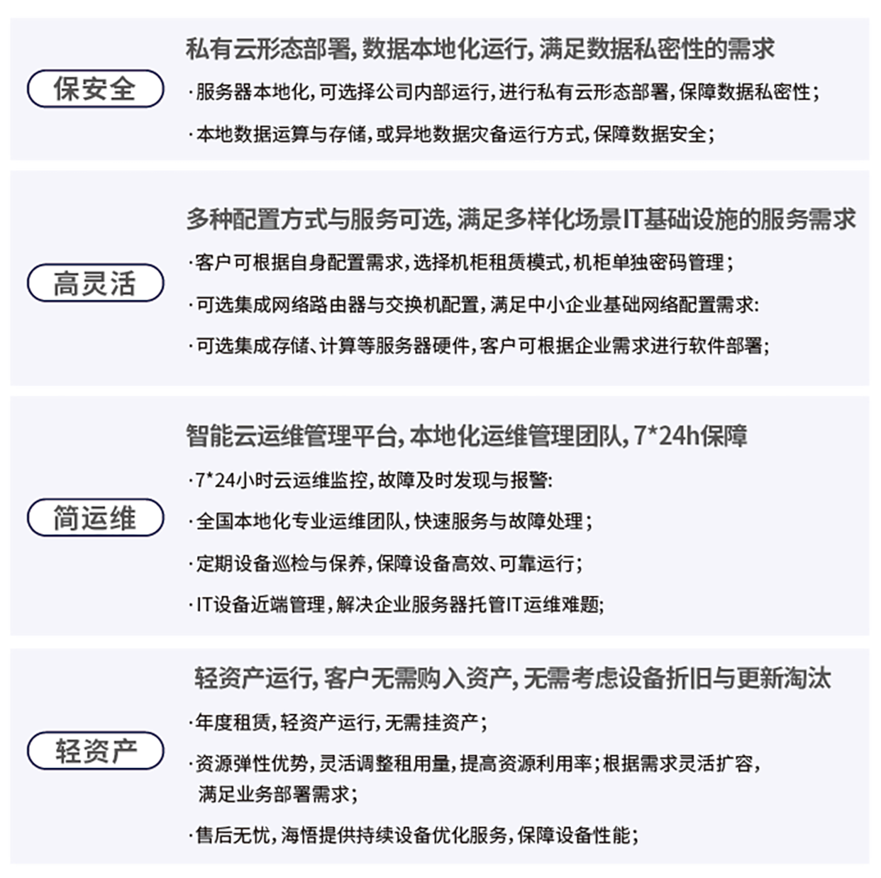 海悟云“云邊驛站”園區本地化私有數據機房托管服務解決方案,以高效、安全、靈活、經濟的優勢,助力中小型企業輕松應對算力時代的挑戰。我們期待與您攜手,共同開啟數據管理的新篇章!