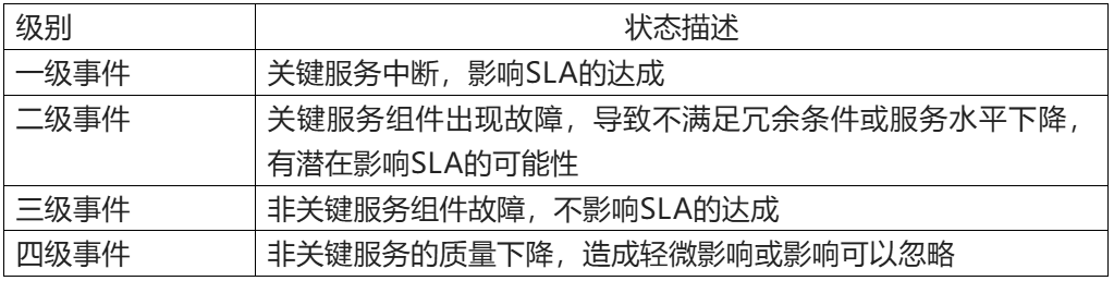 所謂事件是指可能會(huì)導(dǎo)致服務(wù)中斷或服務(wù)質(zhì)量下降的,不屬于標(biāo)準(zhǔn)服務(wù)的事件。事件不僅包括了與軟件和硬件有關(guān)的錯(cuò)誤,還包括服務(wù)請(qǐng)求。