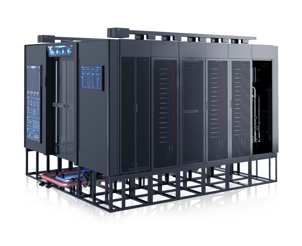 海悟液冷雙排數(shù)據(jù)中心解決方案以單個模塊為單位,采用模塊化設計理念,高集成高標準設計,整合IT機柜、配電單元、封閉組件、制冷單元、預制二次管路、布線、綜合運維等功能獨立的單元,實現(xiàn)數(shù)據(jù)中心的完整功能。液冷單個模塊組件全部在工廠預制安裝、調試,可靈活拆卸、搬運,即節(jié)約機房空間又可靈活擴展,實現(xiàn)現(xiàn)場批量快速部署,提供PUE≤1.15的高功率密度場景的綠色節(jié)能解決方案。